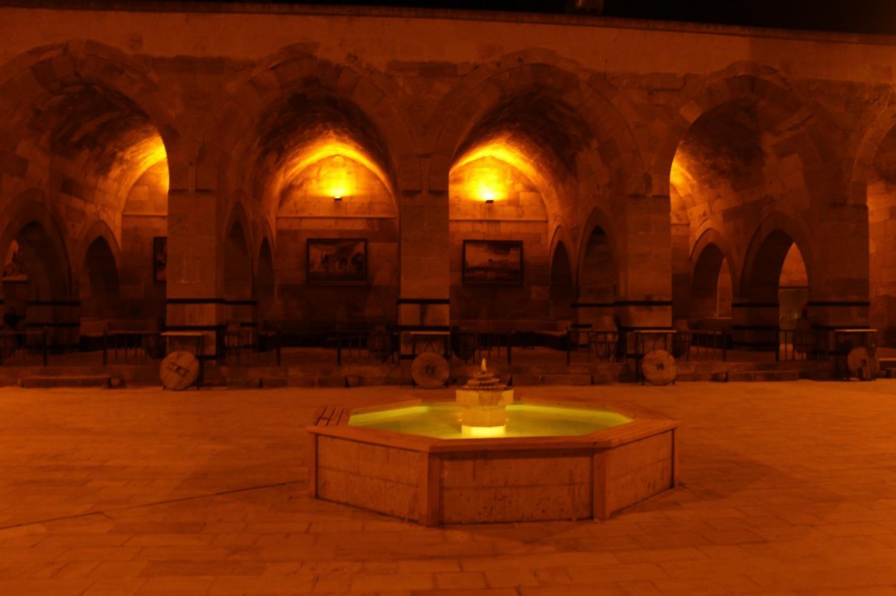 Sarihan (also spelled as Saruhan, meaning Yellow Caravanserai) covers an area of 2000 sq. m and was built during the reign of Izzettin Keykavus II (1249-1254), perhaps by him, in 1249. It is constructed of smoothly hewn yellow, pink and beige stone. Two contrasting colours of stone are used to decorative effect on the arches of the main outer portal and inner portal. Restoration of this caravanserai, parts of which were in ruins, was completed in 1991. This was the last caravanserai to be built by the Seljuk sultans. Today, the Whirling Dervish’s Ceremony is performed nightly at the Sarihan Caravanserai.