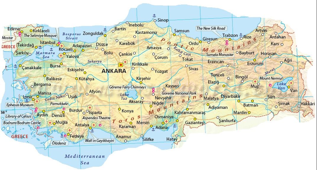 The Bosphorus and the Dardanelles Straits owe their existence to the fault lines running through Turkey that led to the creation of the Black Sea. There is an earthquake fault line across the north of the country from west to east.