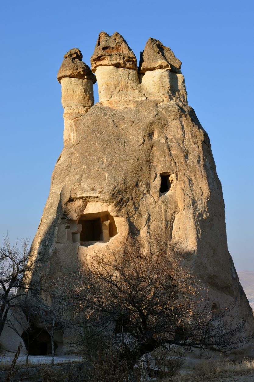 Pasabag Valley contains some of the most striking fairy chimneys in Cappadocia with twin and even triples rock caps. This style is unique even for Cappadocia and these fairy chimneys are named mushroom-shaped fairy chimneys.